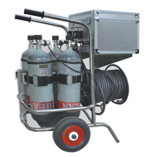 長管呼吸器由移動式供氣源和呼吸器組合而成,備有30m固定管1根、10m長管兩根,*大使用距離50m,配有2套呼吸罩,可供兩人同時使用。